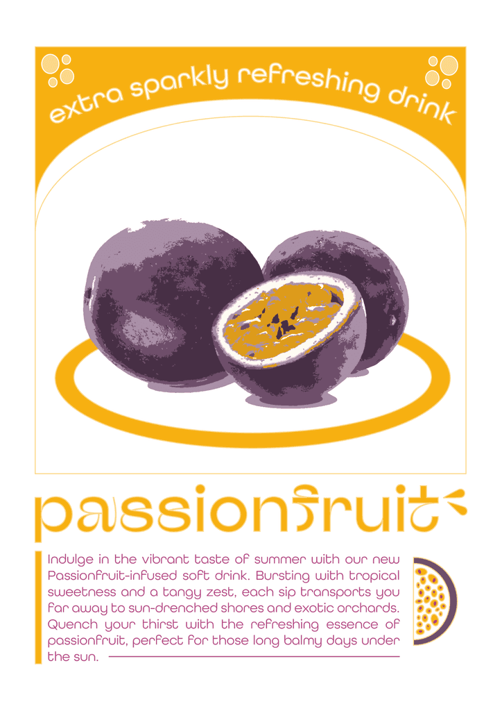 Gemeinsam zeigen die drei Motive, wie sich Geschmacksprofile in eigenständige visuelle Welten übersetzen lassen – von explosiv und kraftvoll bis hin zu sanft und träumerisch. Jede Illustration vermittelt nicht nur den Geschmack, sondern auch das Gefühl, das mit ihm verbunden ist: die Energie eines spritzigen Fruchtkicks, die verspielte Süße eines tropischen Moments oder die entspannte Gelassenheit eines sonnigen Strandtages. So entsteht eine Serie, die Geschmäcker nicht nur zeigt, sondern emotional erfahrbar macht – farblich, typografisch und atmosphärisch.
